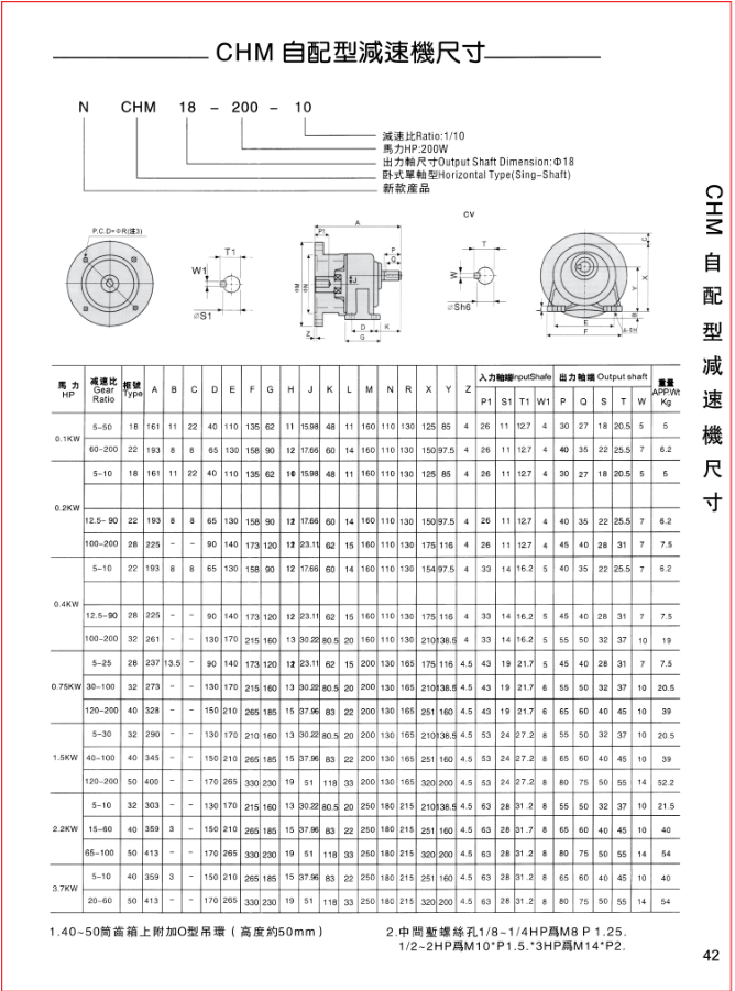 下圖表為各個(gè)型號(hào)的齒輪減速機(jī)選型參數(shù)表: